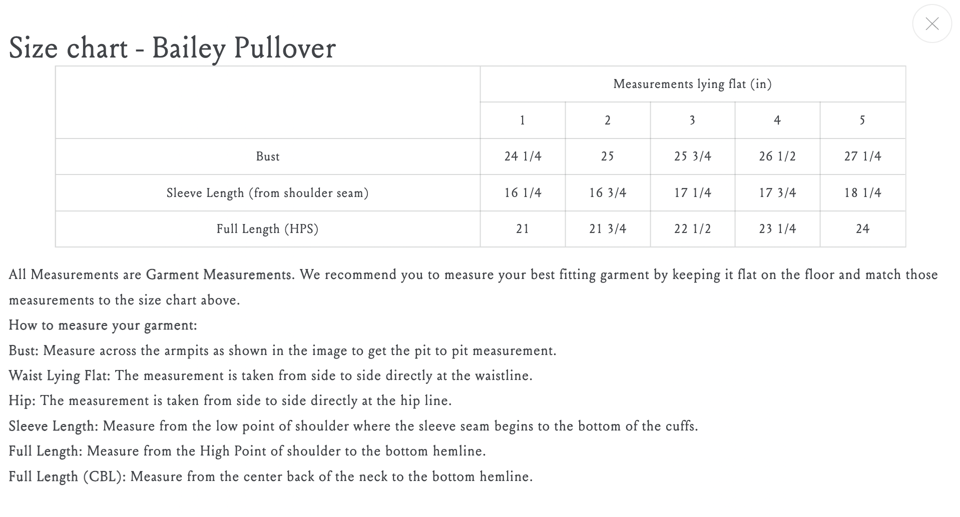 Chest: 30.5", Waist: 26", Hip: 36", Height: 5'9