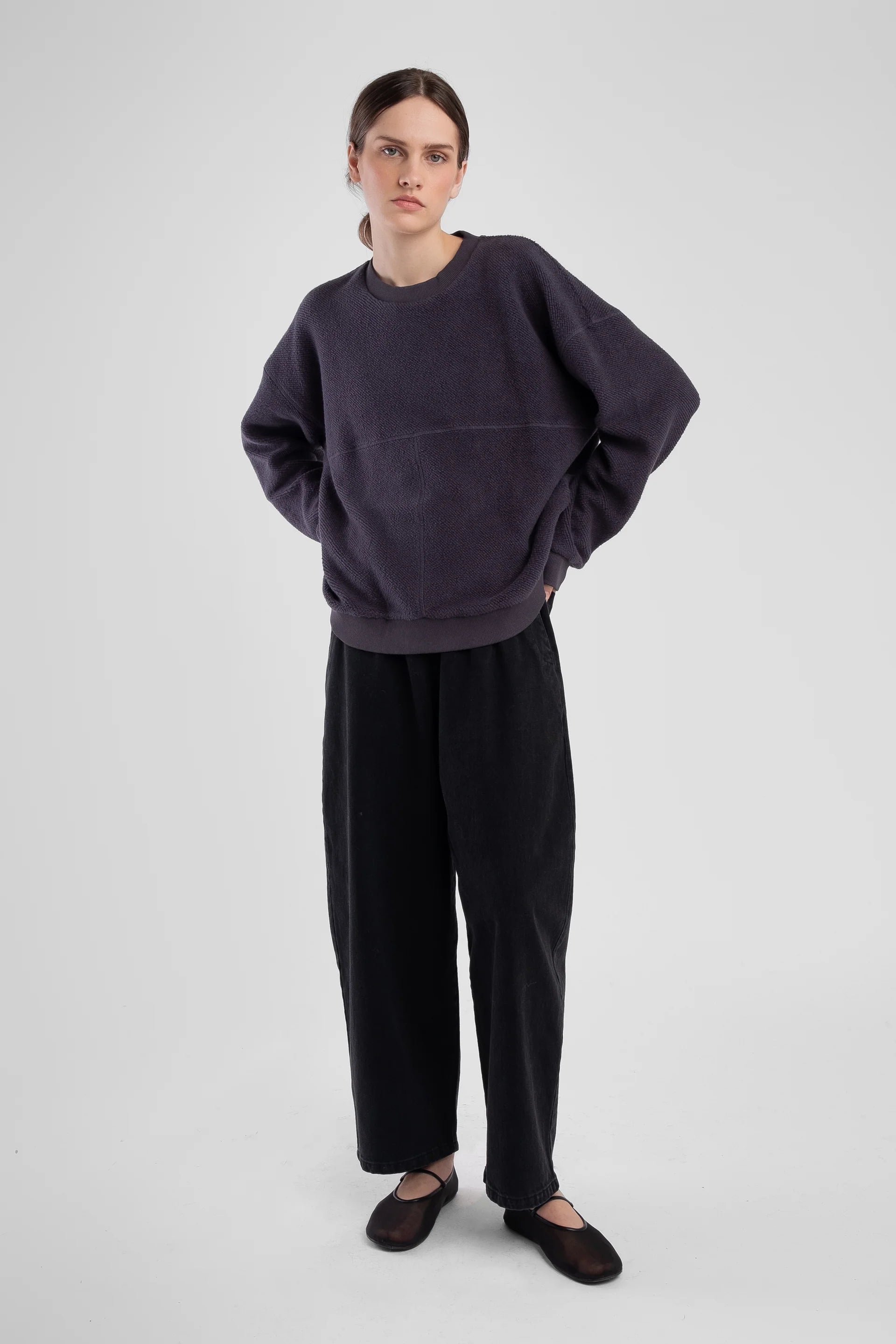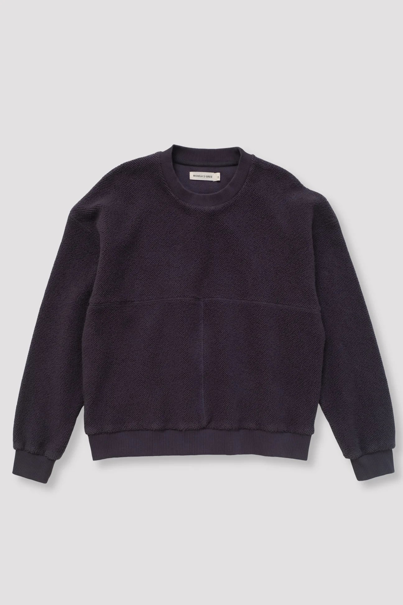 Organic cotton crewneck sweatshirt in super soft brushed loop terry. Relaxed fit with seam details at front.